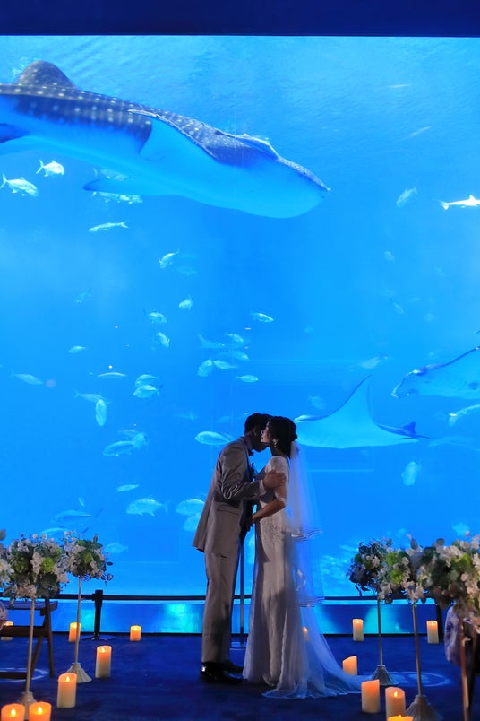 幻想的な空間にお魚たちに祝福されながら、世界有数の水族館でフォトウェディングや結婚式が行える。