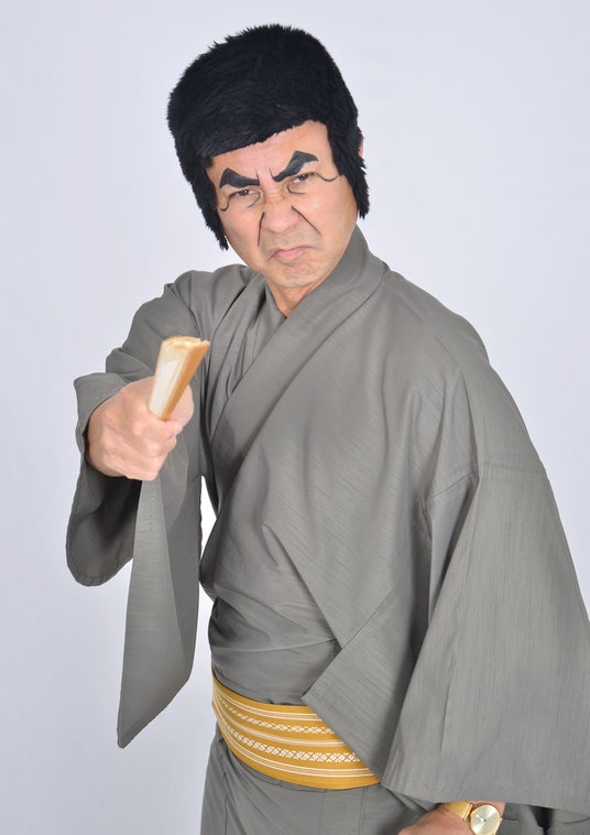 肩書は護得久流民謡研究所会長。沖縄のお笑い芸人No1を決めるテレビ番組に出演以来、沖縄で人気を呼びTV、県外のラジオ局レギュラー、CMに60本以上出演するなど沖縄での注目度 No1コントキャラ。