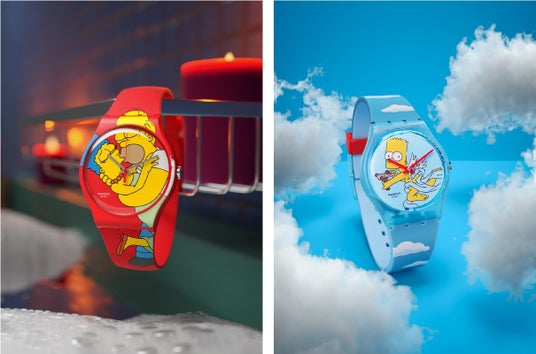 SWEET EMBRACE とANGEL BARTS は、Swatch ファンにもThe Simpsons ファンにも完璧なかわいいアクセサリーで、Swatch ストアとswatch.com で1 月18 日に販売開始されます。