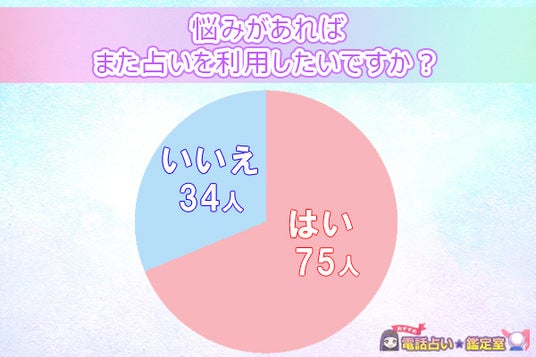再び悩みがあれば占いを利用したいと回答したのは75人で、多くの人が占いを有用なコンテンツと見なしていることがわかります。