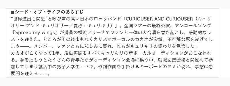 本作は原作・野島氏×作画・蓮まこと氏が描く本編ストーリーのほかに、現実のトップクリエイターである音楽プロデューサー・Daisuke”DAIS”Miyachi氏とスタイリスト・袴田能生氏が、それぞれ作中曲と衣装を全面監修しているところも大きな特徴のひとつ。そしてこのたび、0話と1話に登場するキュリキリの代表曲『Trust yourself』のインストゥルメンタルを以下の作品公式Xで公開します。音楽コミックに立ちはだかる「作中曲は個人の想像の域」という壁を超え、現実に展開していく本作をどうぞお楽しみに!【『シード・オブ・ライフ』連載概要】