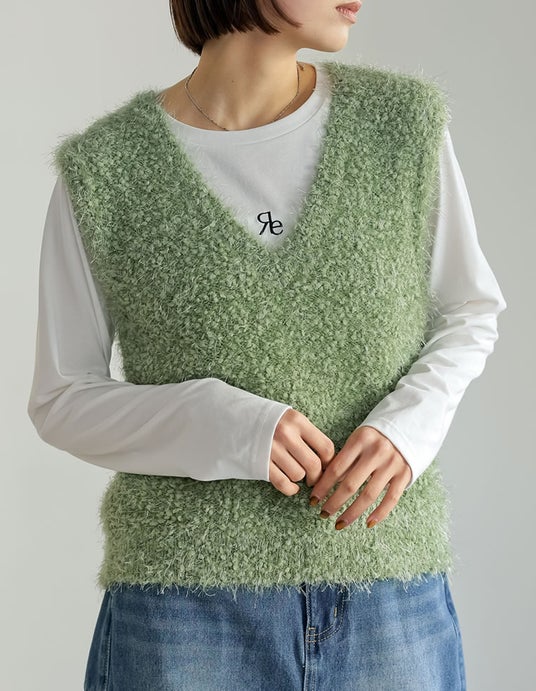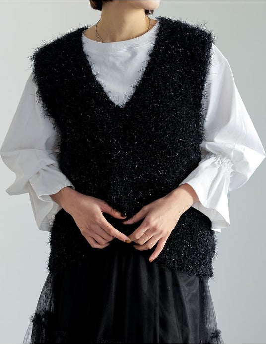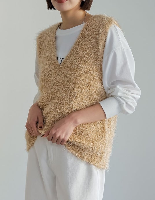 ぽこぽことした表情豊かな風合いが魅力のラメシャギーニットベスト。