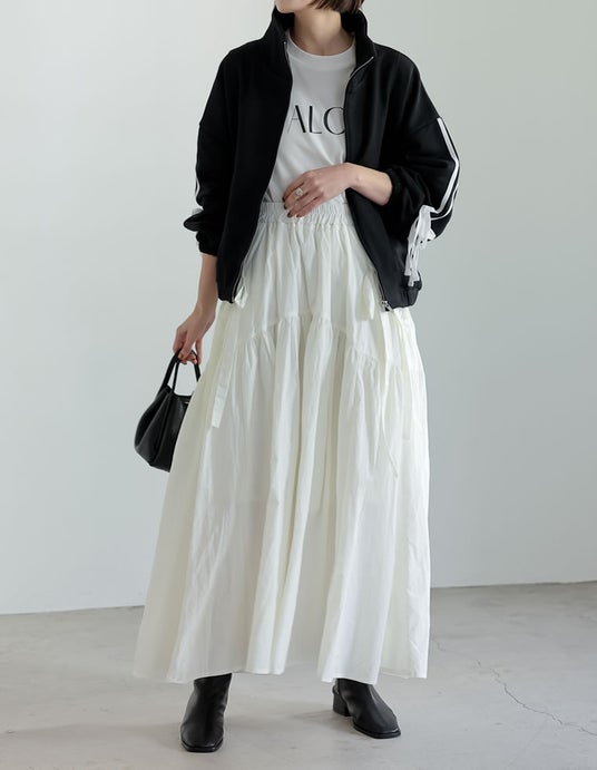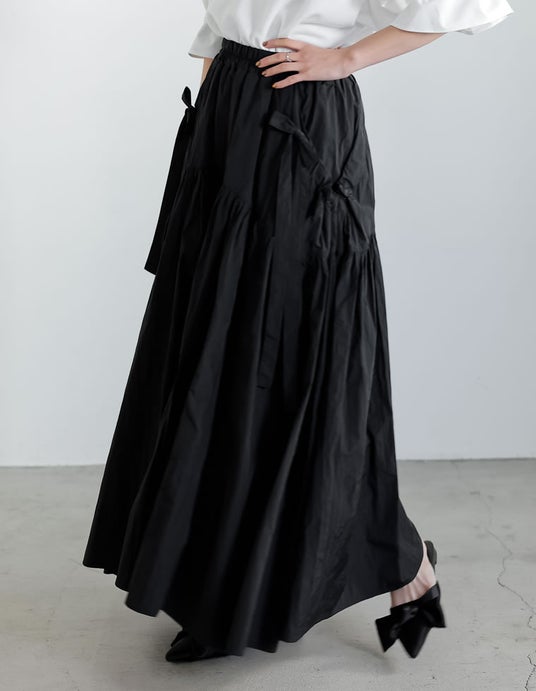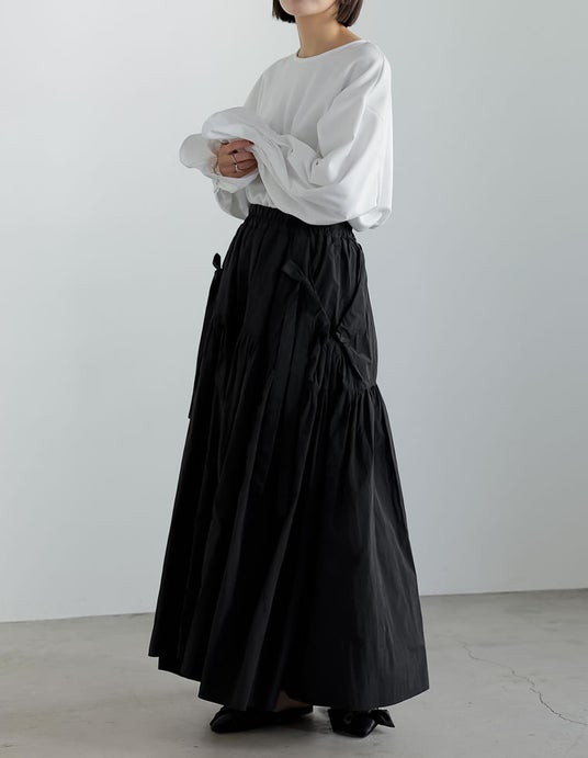 ギャザーがたっぷりと入っていて、立体的なシルエットをメイク。