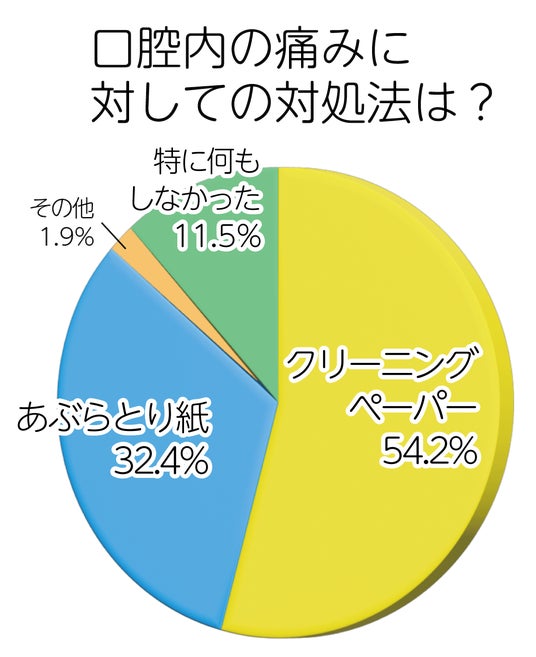 そして対象楽器(クラリネット/サックス)の約86%の演奏者は、この痛みの対処方法として、「クリーニングペーパー」や「あぶら取り紙」等の薄いシートを小さく何回も折りたたみ、下歯にかぶせて使用しているという実態がわかりました。