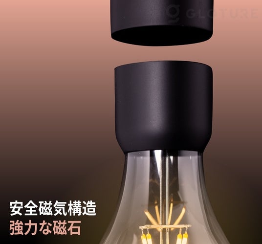 黒を基調としたレトロな雰囲気の電球が宙に浮かんで光る様子は、どんな部屋でもはっと目につくおしゃれなインテリアになること間違いなし。