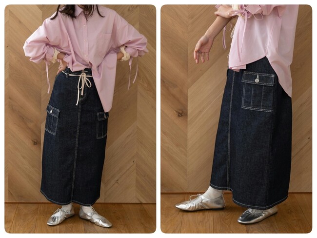 カジュアルさとフェミニンの絶妙なバランス感が魅力的なカーゴスカート。