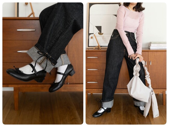 太めにロールアップしてリボンをアクセントにしても、裾のリボンを絞ってシルエットを変えても、あえてロールアップせずにくしゅっと履いても、様々なアレンジが可能なマルチウェイデニムパンツ。