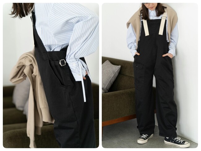 ワークテイストなショルダーベルトとゆるっとこなれたシルエットがポイント。