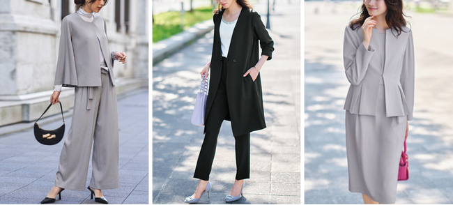 卒業式や入学式などフォーマルウェアが必要となる場面が多い春シーズン。せっかく購入したアイテムは、イベント時だけでなくさまざまなシーンで着用できるとうれしいもの。RANANより、大切なハレの日にも仕事の日にも着られる3タイプのセットアップスーツが登場しました。今季トレンドのケープタイプやバックペプラムデザインなど、女性らしいシルエットが特長の商品ラインナップです。また、自宅で洗えるお手入れのしやすさに加え、あらゆる動きにも快適にフィットするストレッチ素材もうれしいポイント。幅広い場面で大活躍する便利なアイテムです。