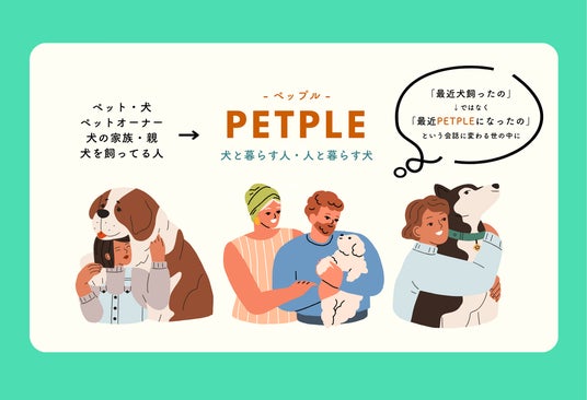 例えば、「最近ペットを飼ったの」ではなく、「最近PETPLEになったの」というコミュニケーションが増え、“PETPLE”は、ペットと暮らす人・人と暮らすペットを表す言葉として、活用されることを目指しています。