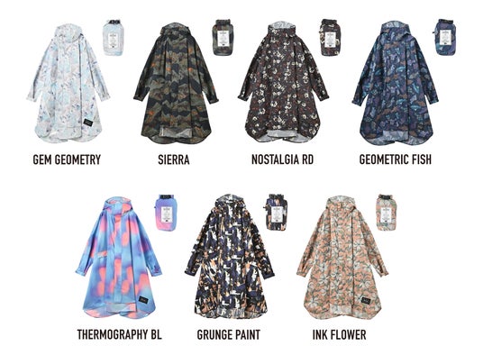 ブランドの代名詞ともいえる「レインポンチョ」は、お手軽な価格ながら高い防水性能が特徴。