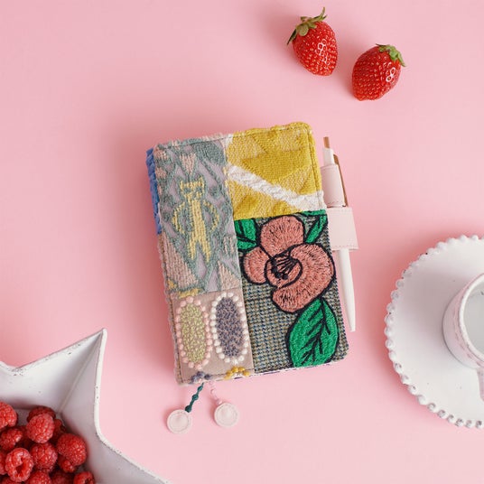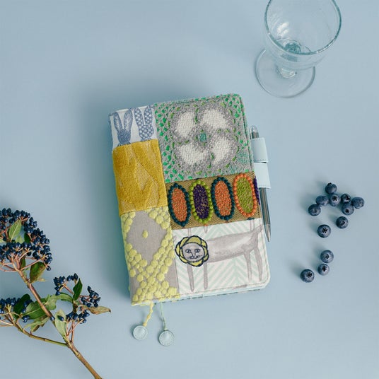 刺繍や染め、織りといったさまざまな技法で生地を作り、長く大切に着られる服を手がけているブランド、「mina perhonen(ミナ ペルホネン)」の手帳カバーです。服を仕立てる際にできたちいさな布のかけら(=piece)を手作業でパッチワークし縫い合わせた人気のシリーズ「piece,」に新作が登場。オリジナル用では9種類、カズン用では10種類、weeks用では9種類の、素材や製法もさまざまな生地が使われています。