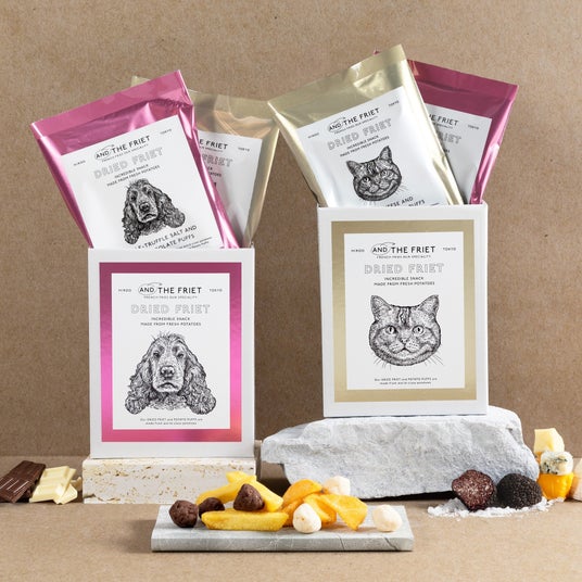 東京・広尾で行列のできるフレンチフライ専門店「アンド ザ フリット」からは、冬季限定品として昨年11月から発売された、1箱の中に、2種類のカットのドライフリットとチョコレートコーティングされたパフが入った甘辛ミックスを楽しめる一品。