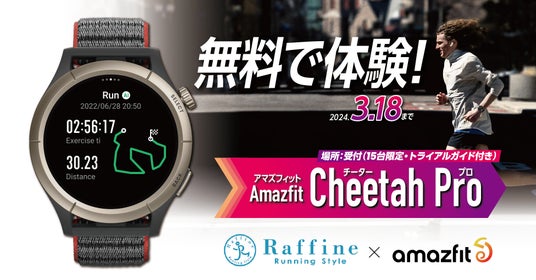 スマートウェアラブル市場をリードするグローバル企業であるZepp Health Corporationは、2024年1月4日からAmazfitのランナー向けハイエンドスマートウォッチ「Amazfit Cheetah Pro」とライフスタイル向けスマートウォッチ「Amazfit Balance」が無料で体験できるレンタルサービスを、ラフィネランニングスタイルにて開始いたしました。