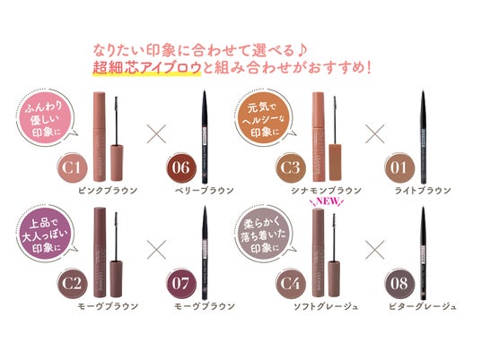 今回登場する新色 「C4 ソフトグレージュ」は眉の存在感を和らげ、柔らかな眉に仕上がる洗練グレージュ。温もり感のある柔らかい雰囲気を演出します。