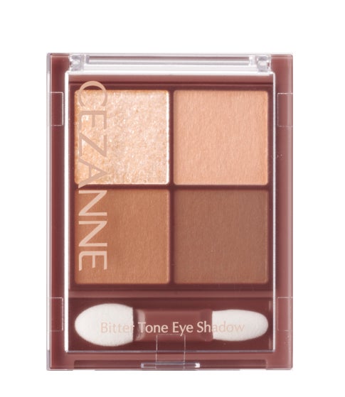 透け感のあるマットな質感と濃厚ブラウンがビターな目元を演出するアイシャドウ「セザンヌ ビタートーンアイシャドウ」は、マットカラー3色とラメカラー1色を組み合わせたパレットで、洗練された立体感を演出します。