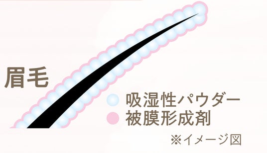 柔らかい膜で眉毛を一本一本コーティングするので、眉毛にムラなく付きしっかり発色。吸湿性パウダー配合で油分のベタつきを抑え、乾いてもふんわり質感のまま