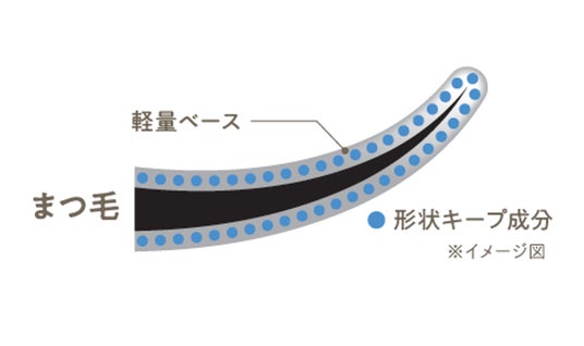軽量のベースにホールド力の強い形状キープ成分を加えることでくるんと上向きカール強力キープ。