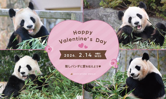 アドベンチャーワールドは、パンダファミリーへ愛を伝えるバレンタイン特別イベントを2024年2月14日(水)休園日のパークにて開催いたします。イベントでは4頭のパンダファミリーへハート型の氷をプレゼントする他、飼育スタッフによるパンダレクチャー、推しパンダへの愛を叫ぶ体験など、ご参加の皆様が存分に愛を伝えられるプログラムをご用意します!パンダ“推し活”を楽しみませんか?