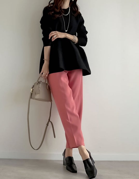 ・トレンドのペプラムシルエットで新鮮見え