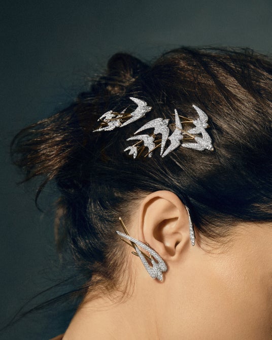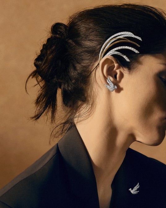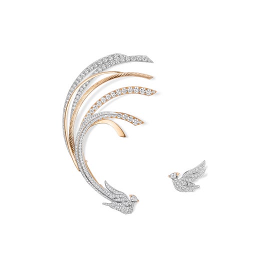 昨年発表した庭園をモチーフとしたハイジュエリーの世界から視点を空に向け、大地と大空の間を可憐に羽ばたく自由な鳥たちの姿に焦点をあてました。