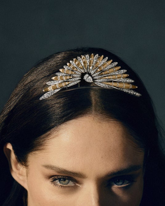ティアラの羽根の部分は取り外してブローチや、ヘアオーナメントに姿を変えることができるトランスフォーマブルなジュエリーです。