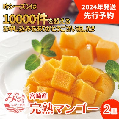 2024年4月から発送予定。国内有数のマンゴーの生産地である宮崎から、太陽の恵みをたっぷり浴びて育った、とろっとなめらかな完熟マンゴーが届きます。