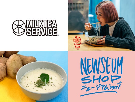 【Pick Up】(MILK TEA SERVICE(R)︎ / Che 333 / THE OOS SOUP BAR / NEWSEUM SHOP)ユネスコ食文化創造都市「鶴岡」発の規格外野菜を使ったコールドプレスジュースブランド「THE OOS」がプロデュースするスープバーから、【自然と生きる】をテーマに、(株)やまとわの協力のもと、森を体感出来るニューエナジーが編集する【ニュージアムショップ】まで、お買い物からご飲食までお楽しみいただけます。
