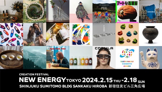 展示会、マーケット、メディアを内包したクリエイションの祭典「NEW ENERGY(ニュー エナジー)」。来る 2024 年 2 月 15 日 (木)・16 日(金)・17 日(土)・18 日(日)の 4 日間、新宿住友ビル三角広場にて開催します。本リリースでは、出展ブランドやトークショー、パフォーミングアーツ、フード情報を先行してご紹介します。(※全来場者入場無料 )