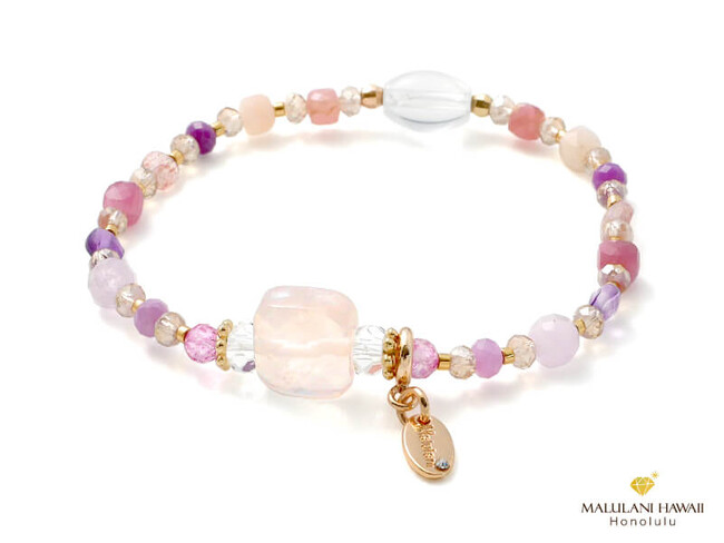 愛と美を象徴するローズクォーツを冠に、ピンクトパーズやクンツァイト、ピンクサファイアやピンクトルマリンなど、魅力と才能を存分に発揮させる天然石で仕立てたブレスレット。