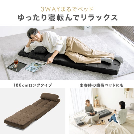 座椅子 座椅子ソファー ソファー ソファベッド 一人掛け シングル フロアチェア クッション付き リクライニング 14段階角度調節 ブラック