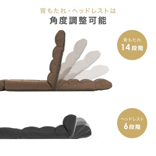 座椅子 座椅子ソファー ソファー ソファベッド 一人掛け シングル フロアチェア クッション付き リクライニング 14段階角度調節 ブラウン