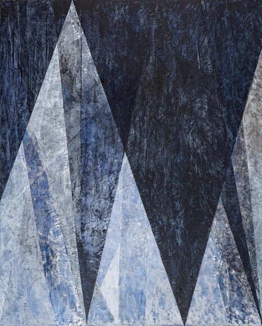 前田紗希は、時間の堆積と境界をコンセプトに、一貫して抽象画を追求しているアーティストです。ペインティングナイフのみで油絵具を何十層にも重ねては削ることで、継続する時間の中で交わらない境界を表現しています。今回は「constancy of space(空間の恒常性)」と題して、「絵の具を何度も重ねることで現れる、線や面の関係とその恒常性は、絵画から空間へと延長する」ことを主張します。徹底的に温かみを排除し、多角形の中で最も単純な三角形が構成する画面からは、絵画が中心となって空間が変化することへの認識を生み出します。
