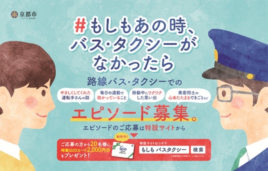 京都市では、路線バス・タクシー等の公共交通の担い手不足解消のため、イメージアップ広報として「#もしもあの時、バス・タクシーがなかったらキャンペーン」を実施します。