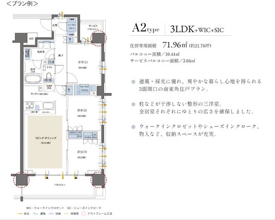3)全戸2m超のハイサッシ、1LDK~4LDKまで全26タイプのプランバリエーション