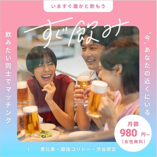 飲み会アプリ“hanabi”を提供する株式会社Hanabi(本社:東京都港区、代表取締役 工藤 正貴、野口 亮祐、以下当社)は、この度、いま飲みたい人同士をリアルタイムでマッチングできる”すぐ飲み”のサービスを提供を、都内3エリア(恵比寿・銀座・渋谷)で開始いたしました。