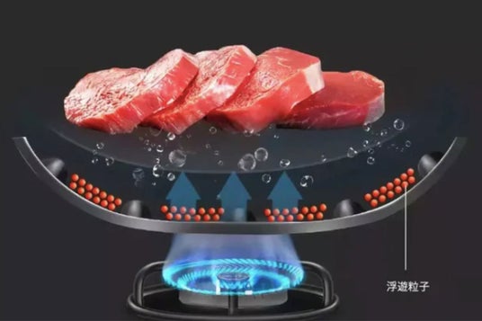 VELOSANフライパンの表面には1,000個以上の浮遊粒子が配置されており、ミリ単位の粒度でシルクのような滑らかなベースを形成しています。この構造がフライパン表面の粒子の間に食材を浮遊させることで、表面と食材との直接接触を避け、浮遊型のくっつき防止効果を実現しました。