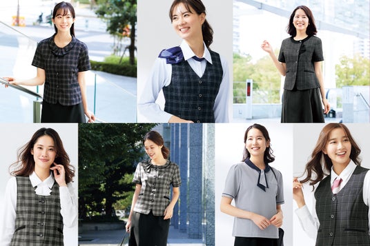 2024年の春夏コレクションは、「好印象で飽きの来ないデザインに女性らしさをプラス」した事務服をラインナップ。事務職員の平均年齢の上昇などを受け、幅広い年齢と職種をカバーする事務服を揃え、全体的に形を見直すことで着心地をさらに改善しています。
