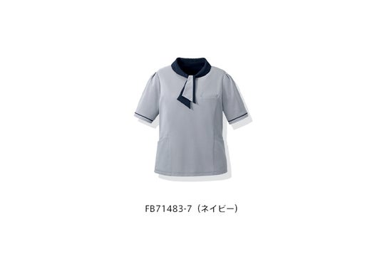 総合病院などでも採用実績のある、メディカルウェア素材を使用しているため洗濯耐久性とイージーケア性に優れます。高い透け防止機能と静電気を逃がす制電糸入り。シンプルなデザインでスカーフとも合わせやすく、施設の雰囲気にマッチしやすいデザインです。