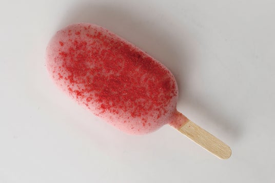 ラズベリーチョコでコーティングしたいちごの棒アイス