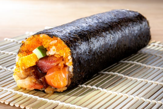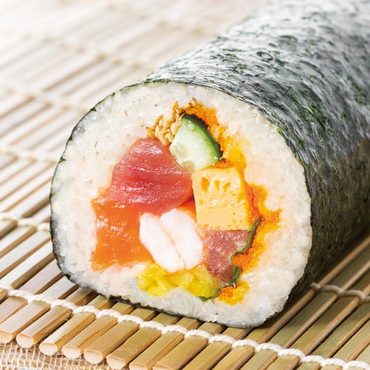 立ち寿司横丁/東京立ち寿司の海鮮恵方巻具材:サーモン・エビ・マグロ・ネギトロ・玉子・ししゃもっこ・きゅうり・ゴマ・大葉・たくあん