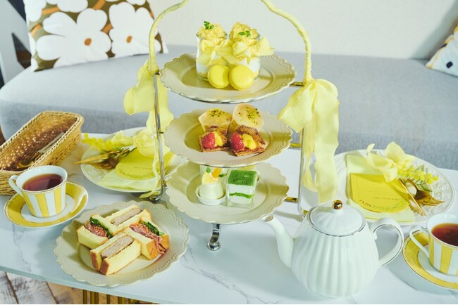 ◆レストラン「イルキャンティ チェリエ」が手掛けるアフタヌーンティーは、国際女性デーの象徴「ミモザ」がテーマ。アメニティコスメや洗顔用ヘアバンドのプレゼントなど、女性も嬉しい特典をご用意。
