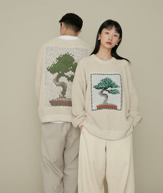 盆栽長袖トップス 31,000円、盆栽カーディガン 32,000円