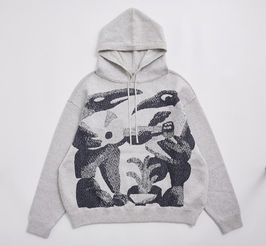 今回のコラボフーディは、Maybelle & Sara Carterが演奏する白黒の朧げな映像の遠い過去に鳴っていた音像から、現実世界とは違う、どこか別の世界線で鳴っている音楽をイメージしてデザイン。銅版画のようなイラストは、画面に「音を刻む」レコードの溝のような趣があり、アナログとデジタルを往復することで醸し出されるテクスチャーを意識しています。