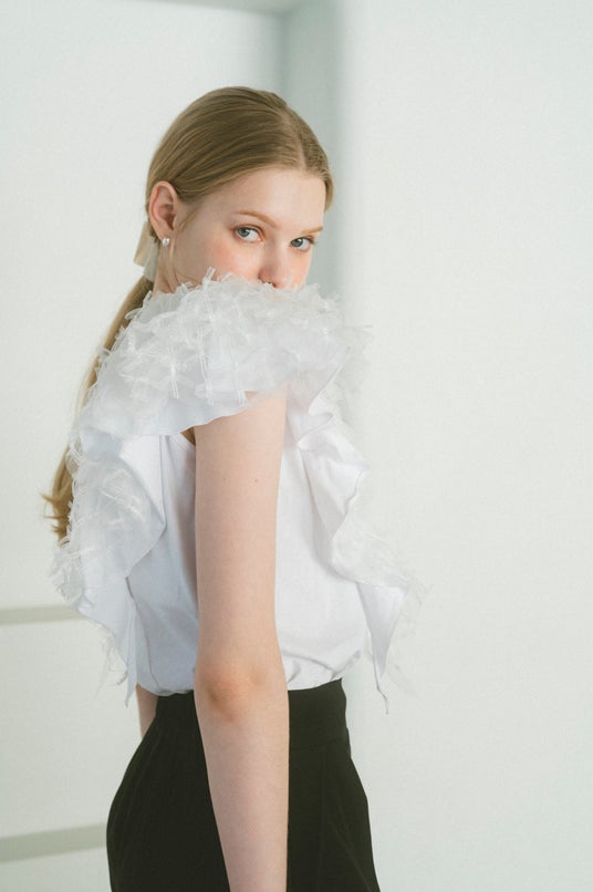 AsymmetryFrillTee white/black ¥5,060 tax in