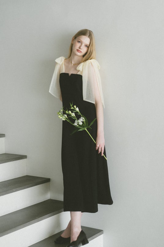 TulleRibbonCamisoleDress gray/black ¥7,150 tax in