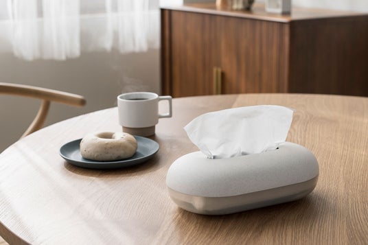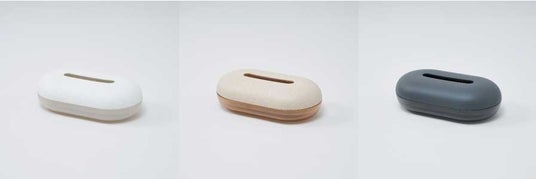 ツートーンデザインのソフトパックティッシュケース。透明部分は残量を一目で確認できます。角のないやさしい形状とコンパクトなサイズ感は置く場所を選びません。濡れても問題ない素材なので、洗面所やキッチンでもお使いいただけます。