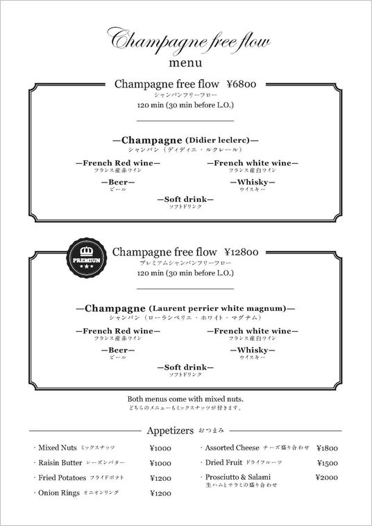 ■シャンパンフリーフローメニュー