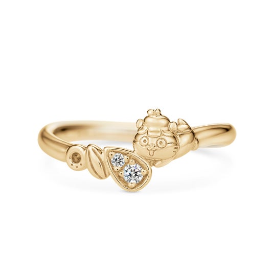 このたびの新作は、コロコロクリリンをイメージしたリング(指輪)です。大好物に囲まれてとっても嬉しそうなクリリンの表情から、フォルム、トレードマークのお花の帽子など細部にまでこだわり表現しました。