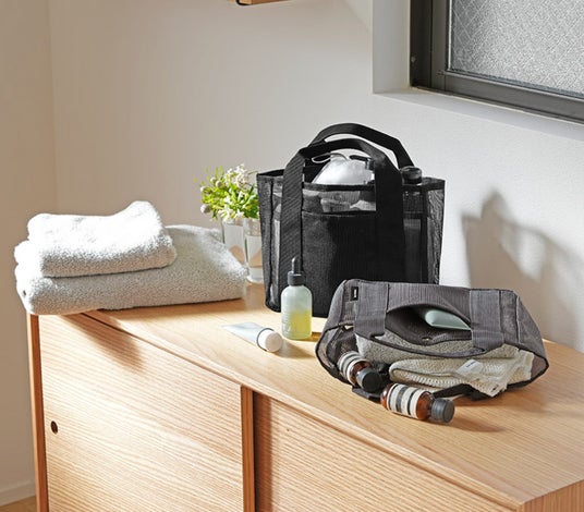 濡れたものをそのままポンっと中に入れても、水切れのいいメッシュ素材なら安心です。